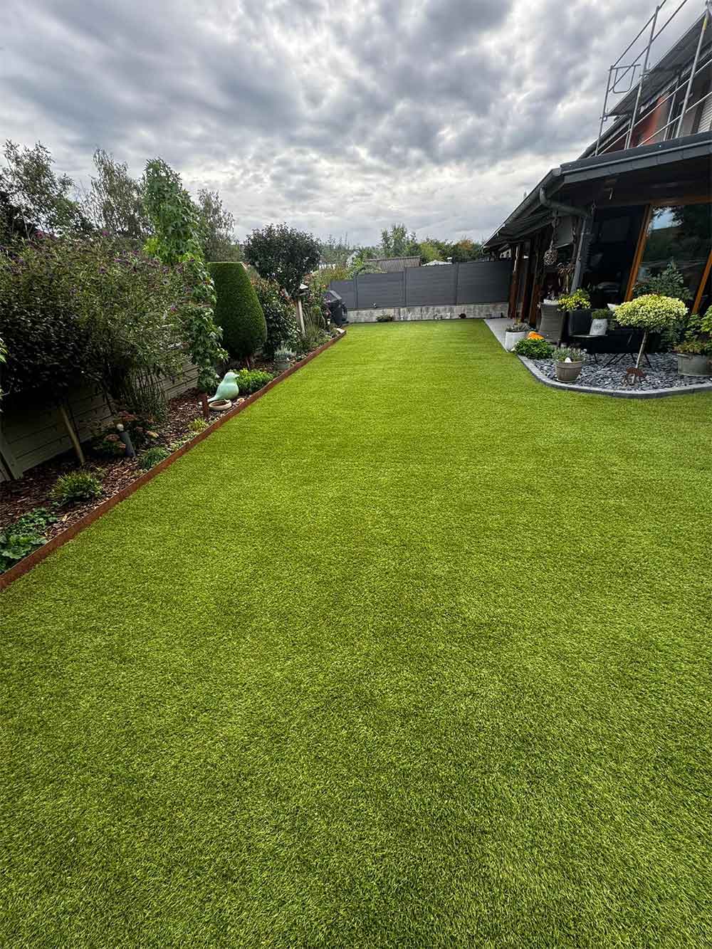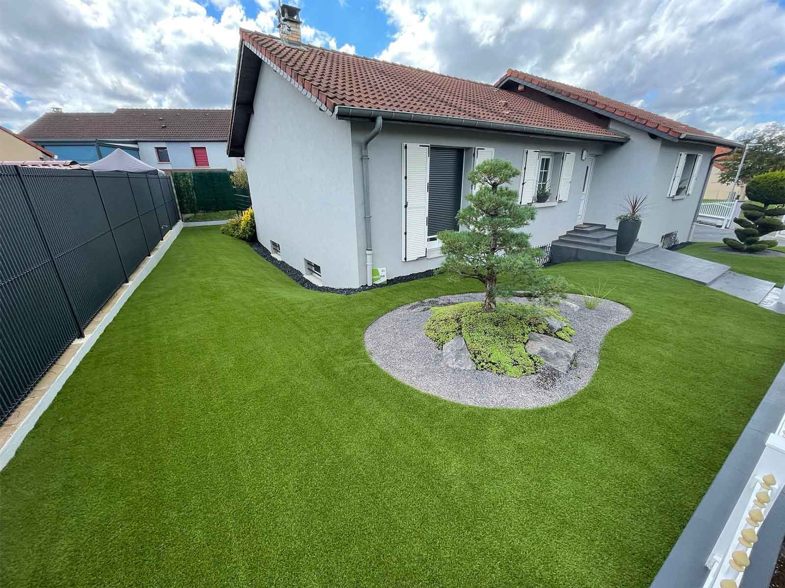 Résultat : une pelouse synthétique parfaitement posée, au rendu naturel et durable dans le temps.